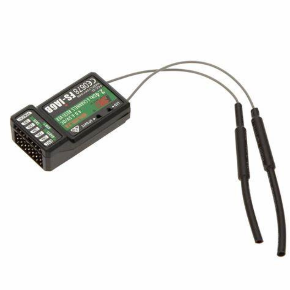 Приемникът FS-iA6B е съвместим с предаватели FS-i6X, FS-i4, FS-i6, FS-i10, FS-GT2E, FS-GT2G.